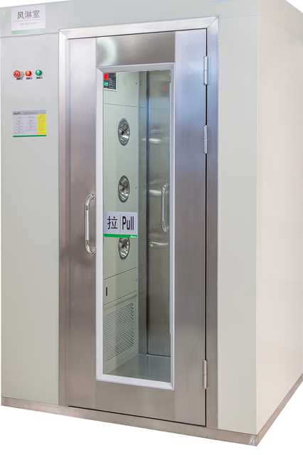 風淋室通常由與潔凈室兼容的鋼或塑料材料制成,并配備了電子動力鼓風機、過濾器和高壓噴嘴,后者被安裝在房間的墻壁和天花板上??諝馑俣仍诿糠昼?000到7000英尺(FPM)之間,持續(xù)從噴氣噴嘴噴出30到45秒,有效地清除了松散的顆粒物。外殼內(nèi)的工作人員將舉起手臂并轉(zhuǎn)動身體,使其均勻暴露在氣流中,這是議定書中通常規(guī)定的程序。噴氣機產(chǎn)生的氣流產(chǎn)生剪切力和撲動力,將平面和衣物折痕上的污染物都拉起并去除。HEPA過濾空氣中的淋浴可以去除99.97%的粒子μm直徑大于0.3。